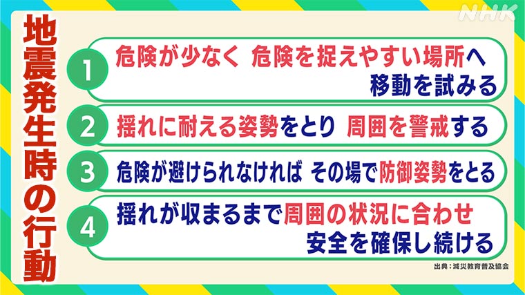 揺れが来るまでのわずかな時間で身を守るために何をすべきか、瞬時に行動を判断する練習が大事だといいます。